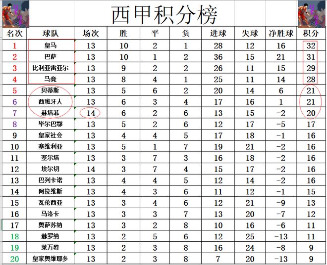 西甲最新积分战报 赫塔菲止连败颓势差马竞8分 皇马只领先巴萨1分